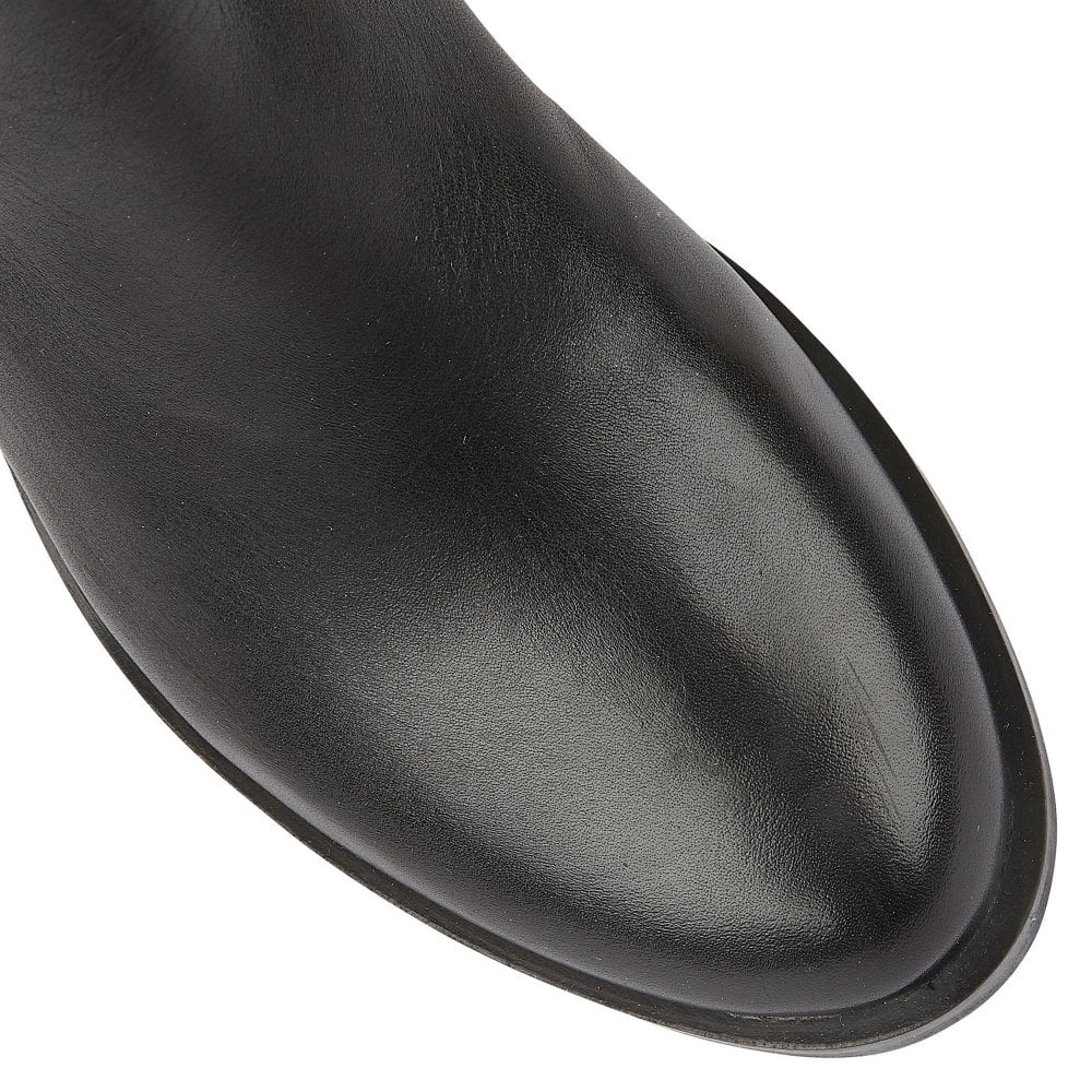Crafted from rich black faux leather, this boot features distinctive buckle accents that add character to the upper, whilst discreet elasticated panels ensure a comfortable, secure fit.