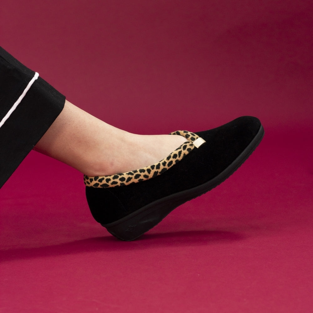 The Paloma leopard trim slipper incorporates a fabulous low wedge heel for extra comfort and Leopard print upper trims for that eye catching moment with a colour matching fastener detail.